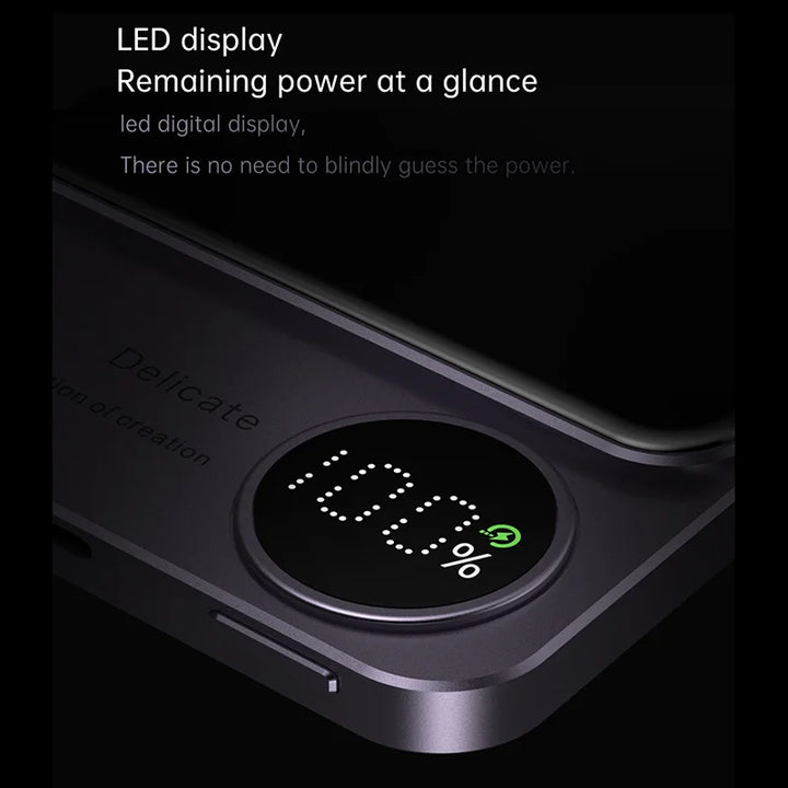 Experience next-level charging convenience with the 10000mAh Alloy Magnetic Power Bank, designed for speed, style, and reliability. Crafted from premium alloy material, this sleek and durable power bank supports 20W PD fast charging and 15W magnetic wireless charging, ensuring your devices power up quickly and safely. With a built-in digital LCD display, you can easily monitor your battery level at a glance. The strong magnetic alignment perfectly attaches to iPhone 12, 13, 14, and 15 series, while other phones can use magnetic charging with a compatible case. Featuring two-way quick charge technology, USB Type-C and Lightning inputs, and wireless + Type-C outputs, it offers versatile charging options for both iPhone and Samsung devices. Compact, lightweight, and portable, it fits easily in your pocket or bag, making it the perfect travel companion. Whether you’re on the go, at work, or on a trip, this mini power bank keeps your devices charged anytime, anywhere. Combining performance, elegance, and innovation, the Alloy Magnetic Power Bank is your ultimate solution for efficient and effortless charging.
